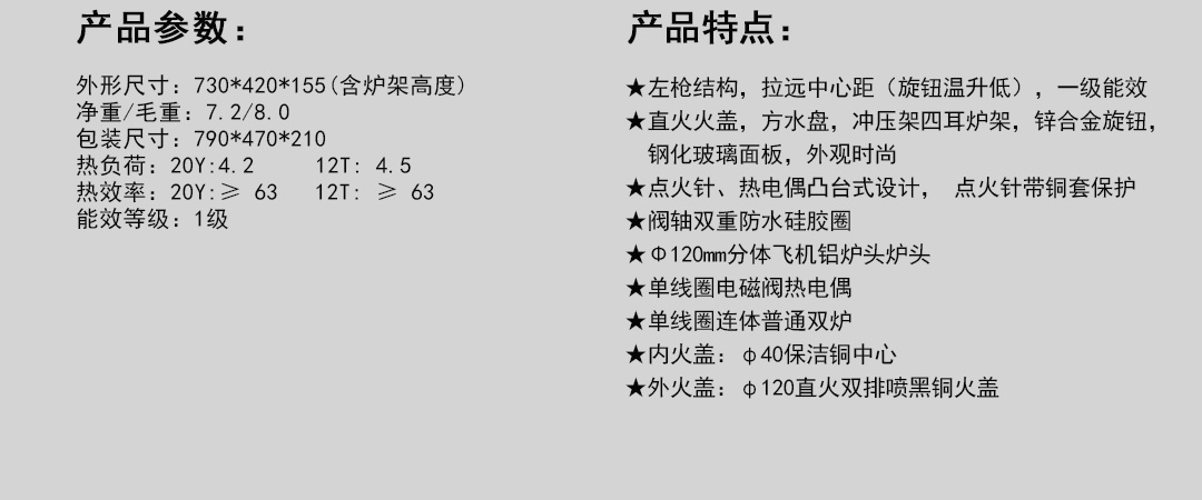 玻璃面板燃氣灶具JZT(Y)-XYQB-031S