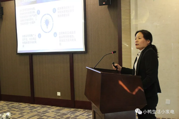小家電副總經理付新麗重點分析了公司基礎管理和運營方面存在的不足,同時提出今后將如何加強管理等一系列措施。