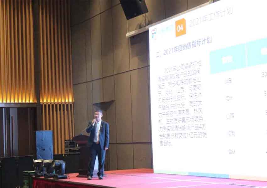 小家電公司副總經理孟濤闡述2020年工程項目部取得的業績,分析本年度工作中的不足以及對明年工程項目市場進行目標銷售分解,針對不同區域采取不同的措施,爭取完成明年銷售指標。